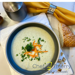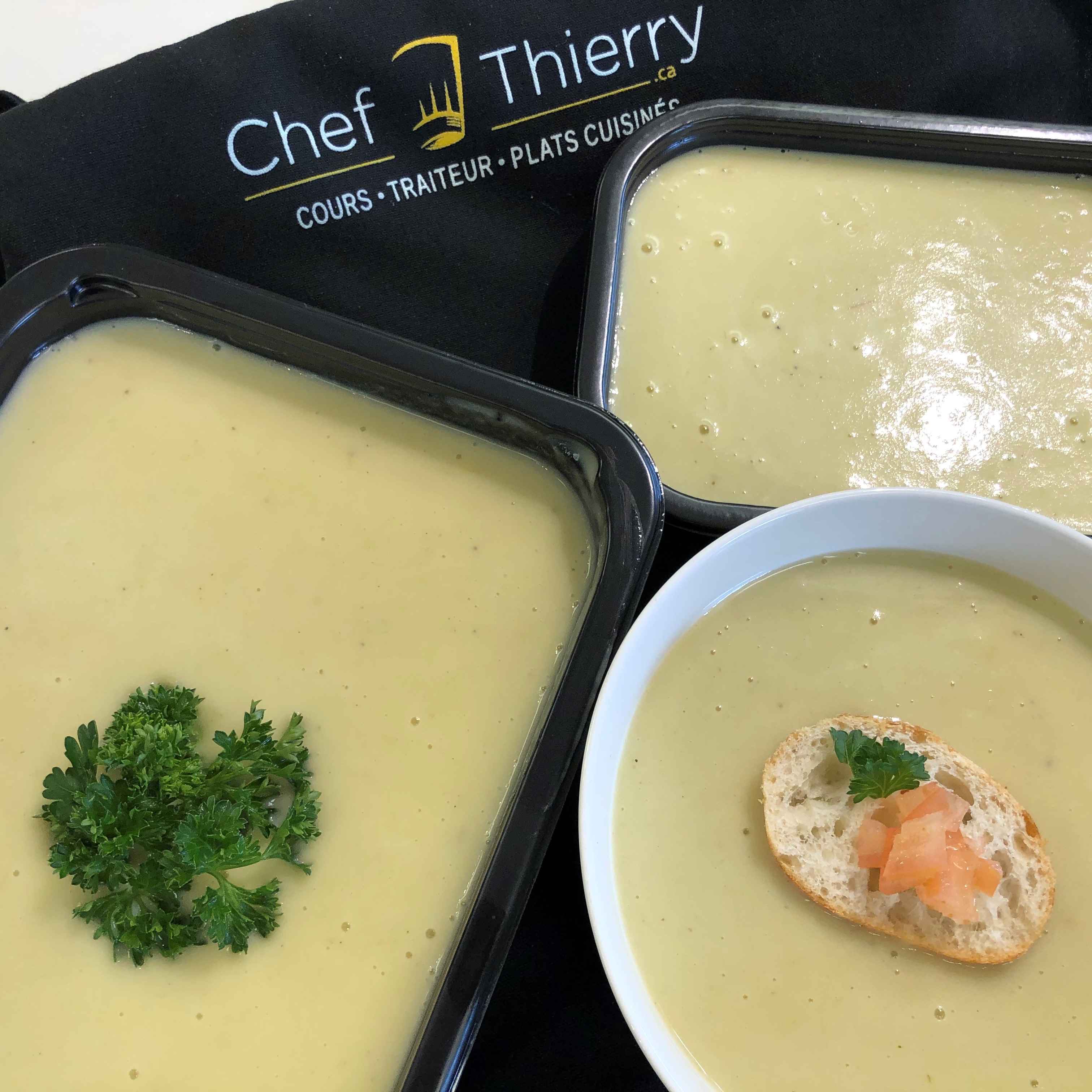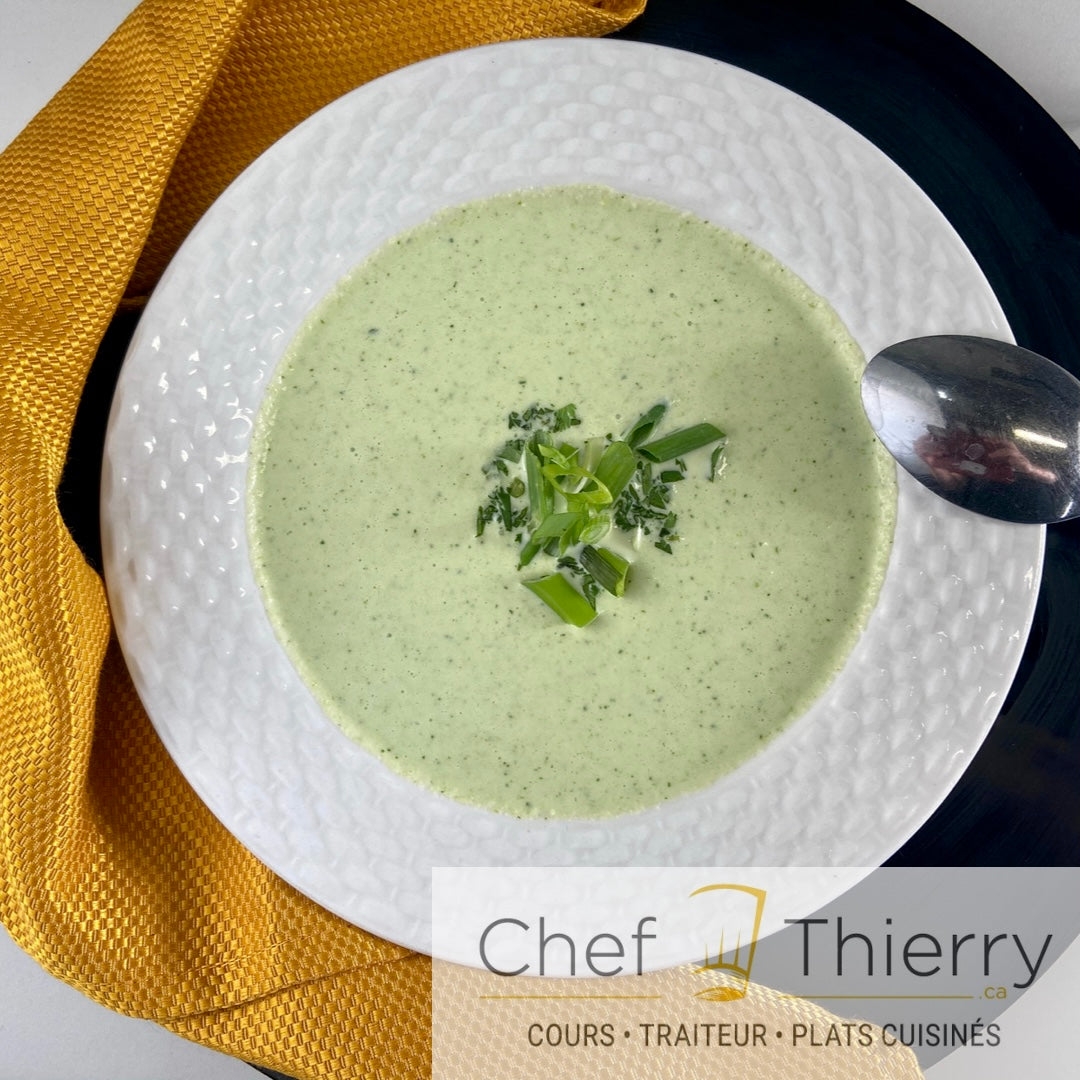 Plats cuisinés, prêt-à -manger, traiteur de Chef Thierry à Gatineau! Disponible en deux format : individuel (400g) et familial (1kg) Ingrédients : Brocolis, oignons, bouillon de légumes (carottes, oignons, céleris, persil), pommes de terre, crème (crème, carraghénine), sel, poivre. Contient lait.